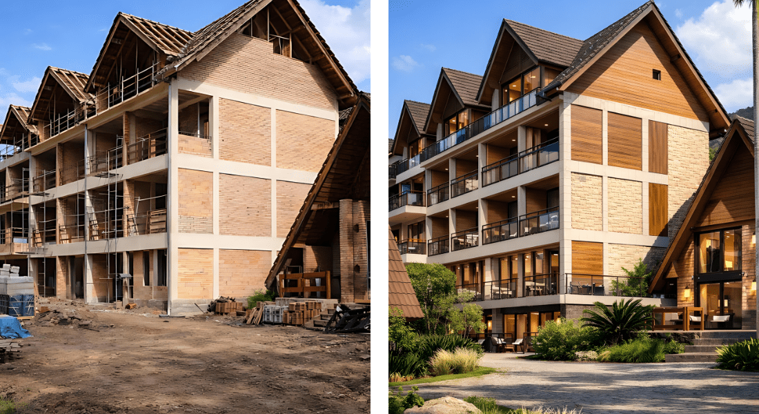 Veja algumas das transformações que realizamos em fachadas, áreas de lazer, portarias e espaços comuns.